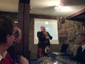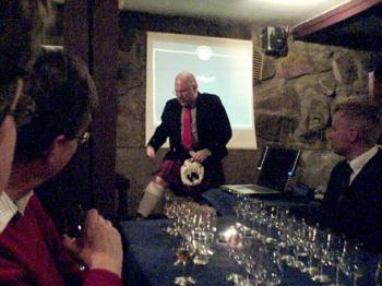 Anders Gjöring beskrev på ett intressant och underhållande sätt allt från den ädla dryckens historia, tillverkningsprocess, smak och geografiska skillnader. Under den senare delen hann deltagarna provsmaka 6 olika sorters maltwhisky.